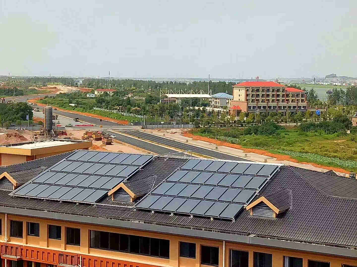 分體式太陽能熱水器可以安裝在別墅住宅的朝南屋面上,也可以安裝在別墅的庭院草坪上,及各種建筑物朝南的坡面上,熱水可以不受限制的發送到任何一個樓層使用,適用范圍廣。