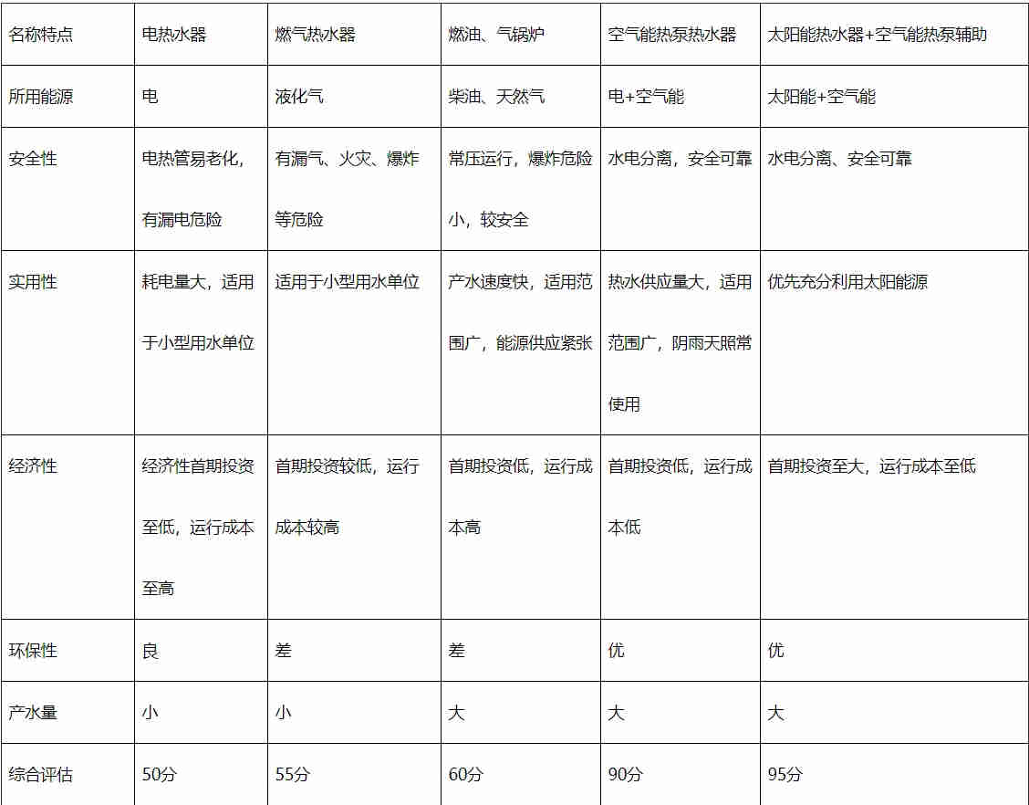 常用熱水系統優缺點綜合比較表