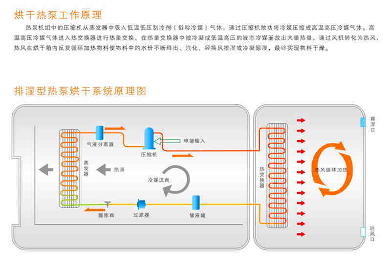 4、運行安全可靠:整個系統的運行無傳統干燥器(燃油、燃氣或電加熱)中可能存在的易燃、易爆、中毒、短路等危險,是一種絕對安全可靠的半封閉干燥系統。