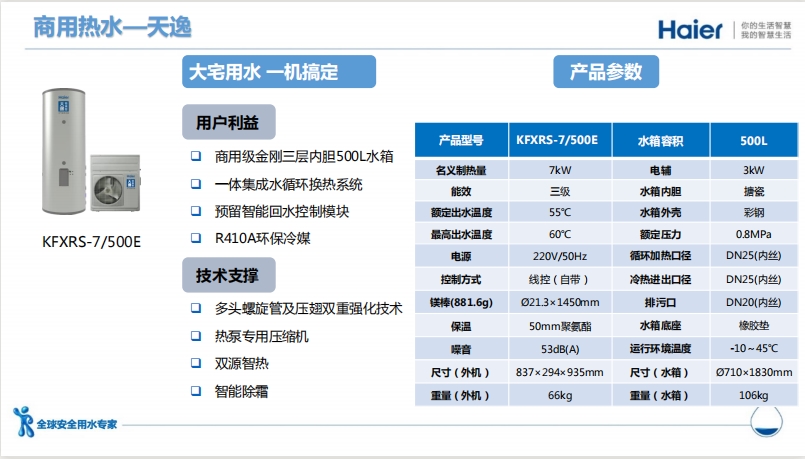 未來,海爾空氣能將繼續以用戶需求為導向,堅持技術創新,破解行業難題,為用戶提供極致體驗。可以預見,空氣能熱泵市場的未來競爭將更加激烈,而圍繞用戶使用體驗、場景衍生出的新需求,將成為接下來的突破方向。對品牌來說,只有通過技術創新,不斷滿足消費升級需求才能加速發展,獲得更多的用戶認可。