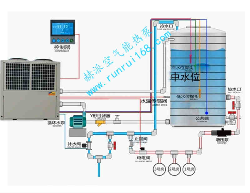 赫派空氣能熱泵產(chǎn)品適用范圍廣泛,像集體宿舍、酒店、學(xué)校、部隊、醫(yī)院、療養(yǎng)院、度假山莊、桑拿洗浴、