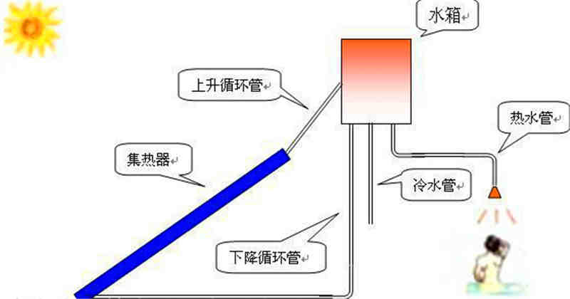 家用太陽能熱水器通常按自然循環方式工作,沒有外在的動力。平板式太陽能熱水器通過自來水的壓力(稱為頂水)提供動力。平板式太陽能熱水器為頂水方式工作,頂水工作的優點是供水壓力為自來水壓力,比自然重力式壓力大,尤其是安裝高度不高時,其特點是使用過程中水溫先高后低,容易掌握,使用者容易適應,但是要求自來水保持供水能力。