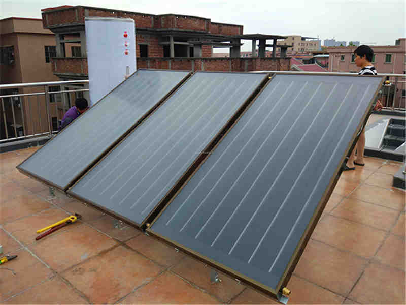 平板集熱器的集熱面板上鍍有黑鉻等吸熱膜,金屬管焊接在集熱板上,平板集熱器較真空管集熱器成本稍高,近幾年平板集熱器呈現上升趨勢,尤其在高層住宅的陽臺式太陽能熱水器方面有獨特優勢。