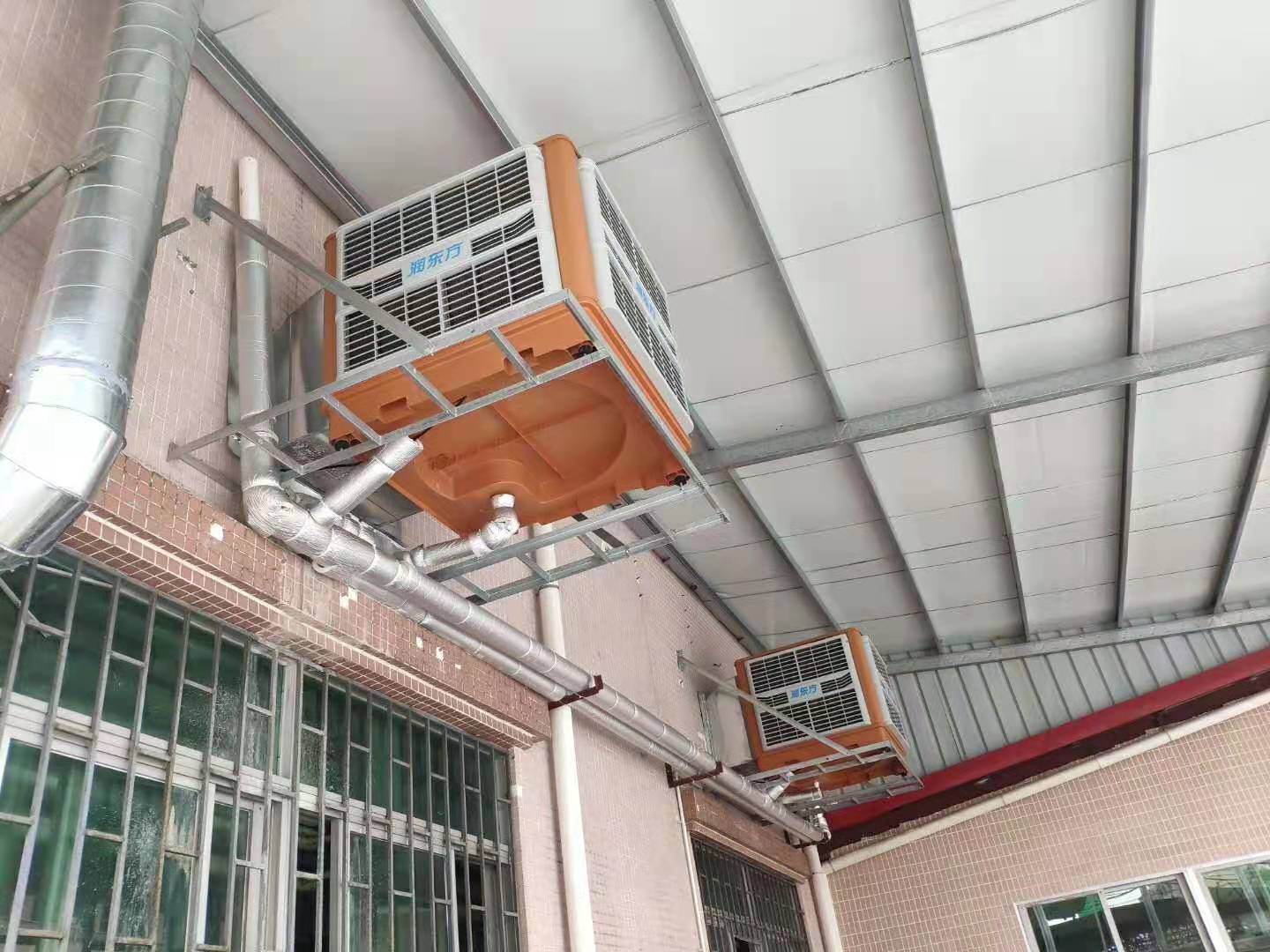 環保空調是根據水蒸發吸收熱量這一自然原理來降溫的, 是我們通常所指的就是商業、工業場所用的“大空調扇”,靠風機電機帶動空氣流經水分加速水分蒸發吸熱來實現降溫。