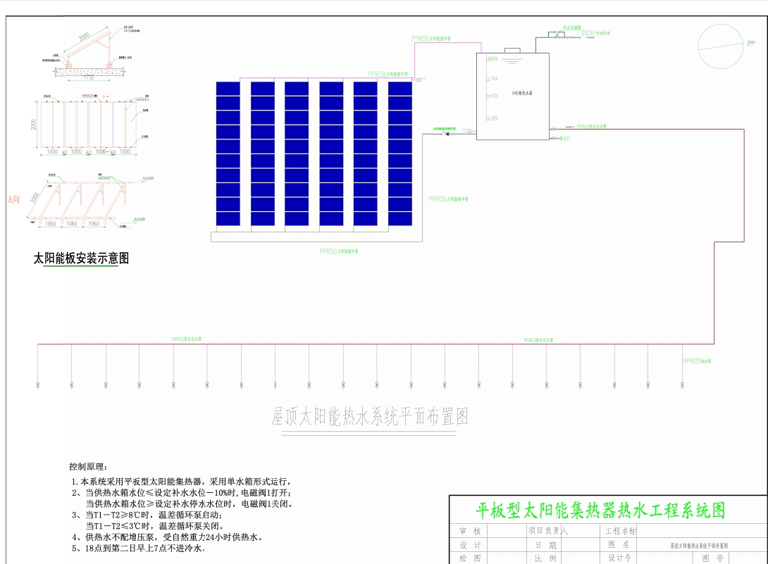 所有的PPR熱熔管作防曬處理,太陽能安裝排污龍頭,方便清洗