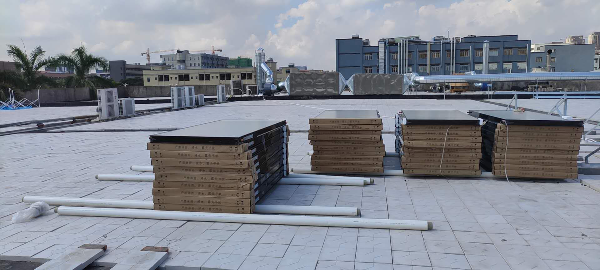 太陽能板,保溫水箱,保溫水管等設(shè)備到場安裝
