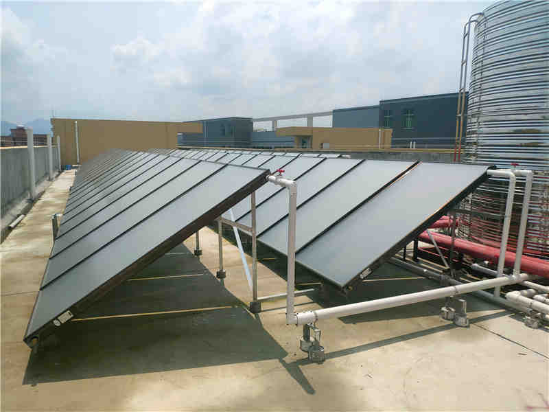 根據該工廠宿舍周邊環境及樓面承重情況,為該工廠熱水工程選擇宿舍樓頂為安裝場地,既不占用工廠地面面積,又保證工廠熱水工程設備隔絕員工常經之地,安全節約空間。