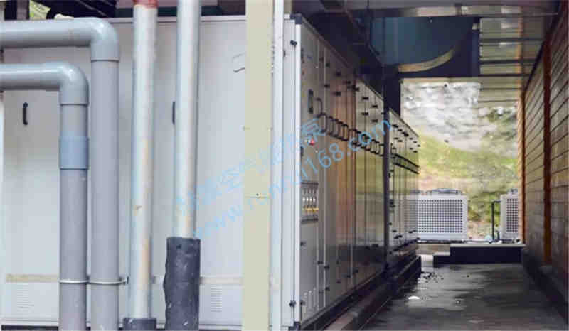 2.降溫除濕:機組配置有系統降溫除濕功能時,滿足系統最大制熱量的風冷或水冷式向外界排熱用冷凝器。